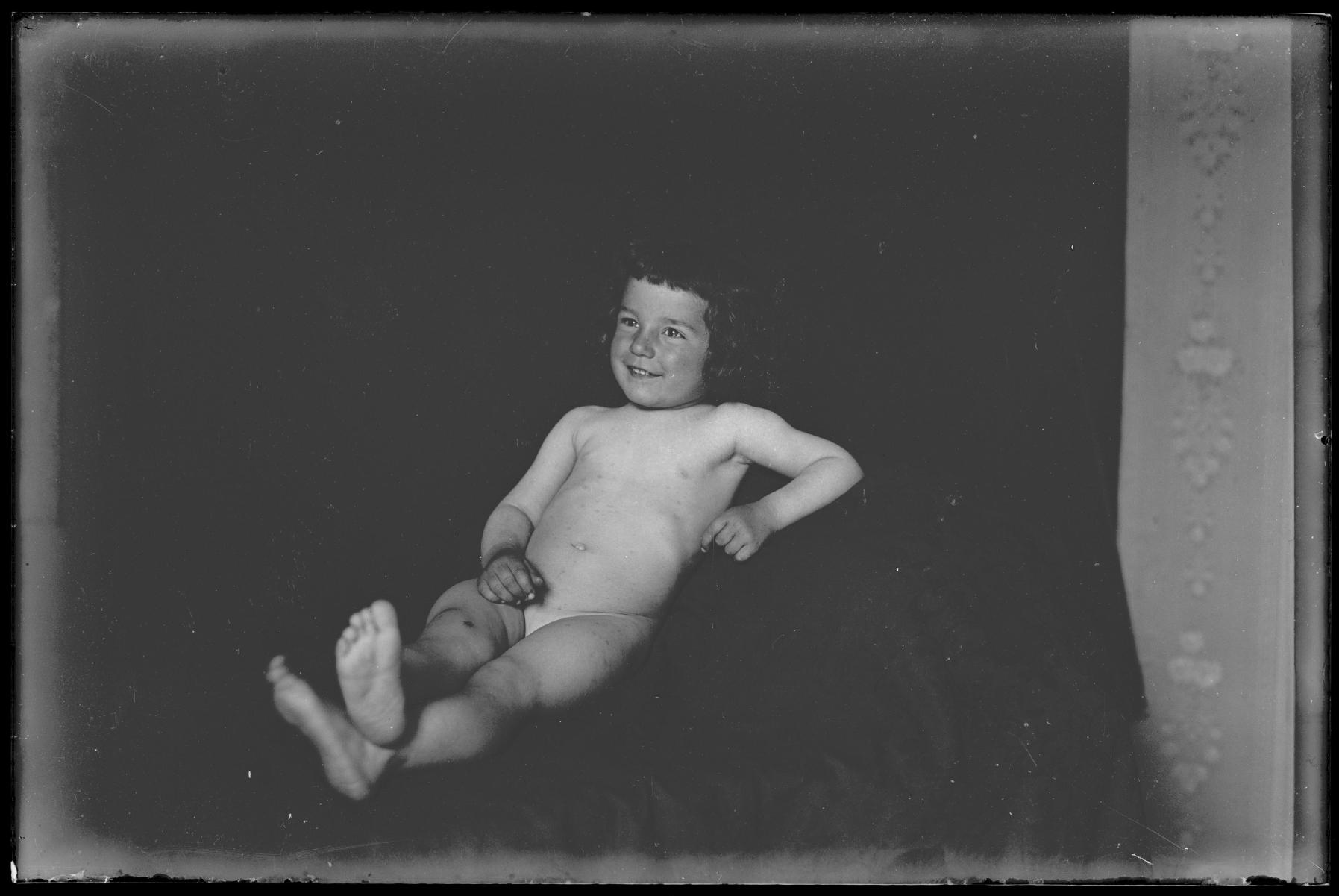 • Contenido: Retrato infantil en plano entero de Margarita Martínez Erro desnuda recostada.