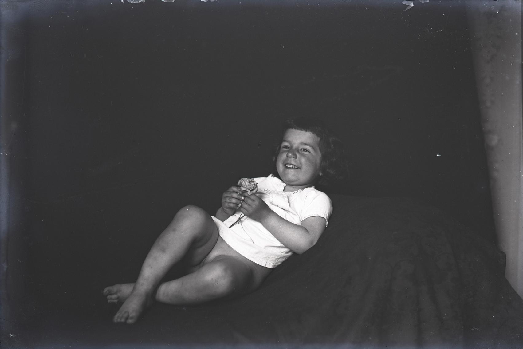 • Contenido: Retrato infantil de Margarita Martínez Erro recostada, con una rosa entre las manos.