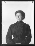 • Contenido: Retrato en plano medio de una mujer joven con vestido oscuro.
