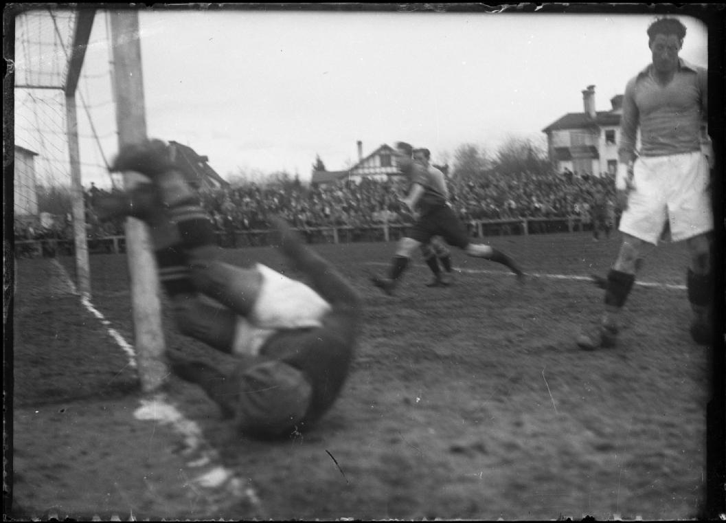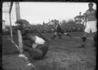 Partido de fútbol entre el Club Atlético Osasuna y el Real Oviedo en el campo de San Juan en Pamplona. Gol del rojillo Paco Bienzobas.