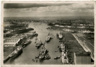 En el reverso, marcas de tarjeta postal y texto impreso: Hammburg. Deutschlands grösster Hafen. Photo Hans Hartz, Verlag Hans Andres Hamburg. Texto manuscrito de Martín para Santos Laspiur, fechado en Hamburgo el 12 de enero de 1951.