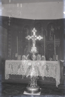Sierra de Aralar. Montaje fotográfico de la imagen de San Miguel sobre un altar.